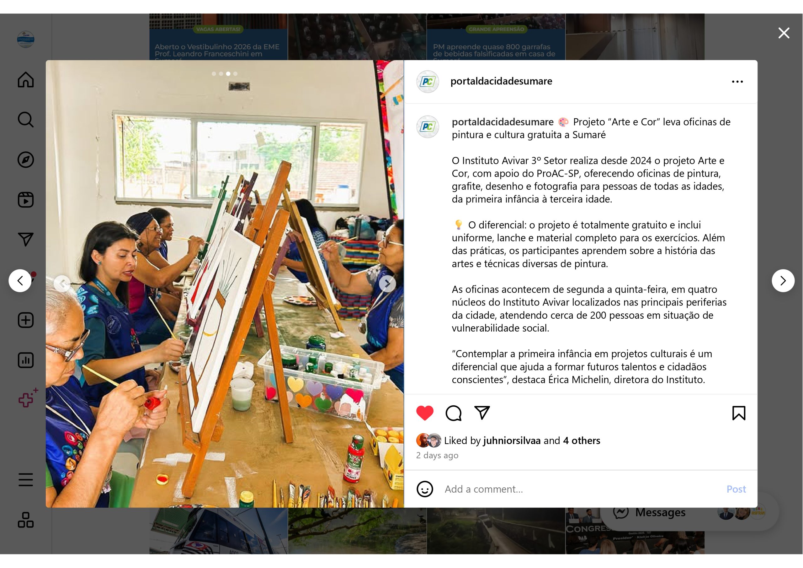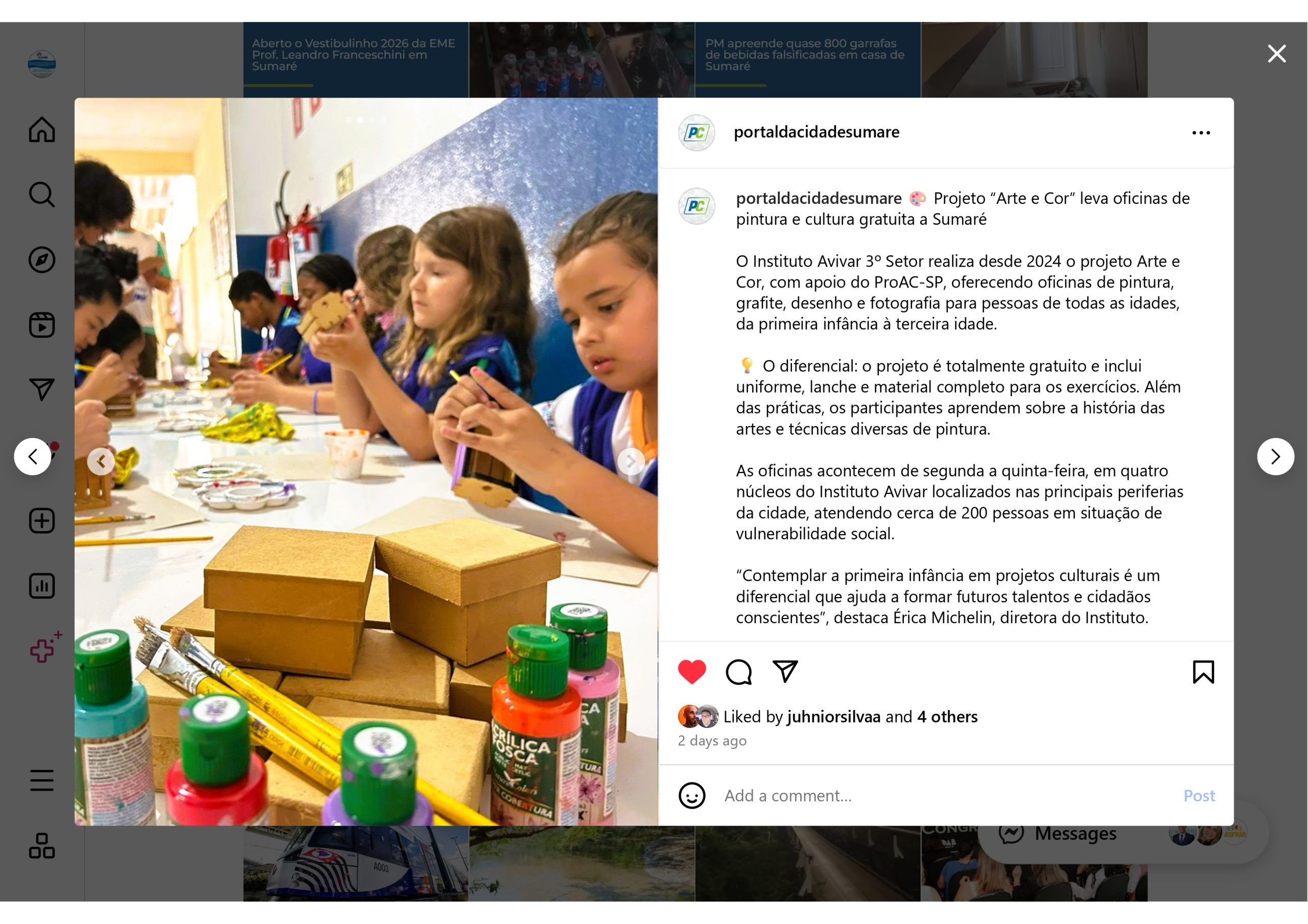 Projeto Arte e Cor leva oficinas de pintura e cultura gratuita a Sumaré – Portal da Cidade – 28/10/2025