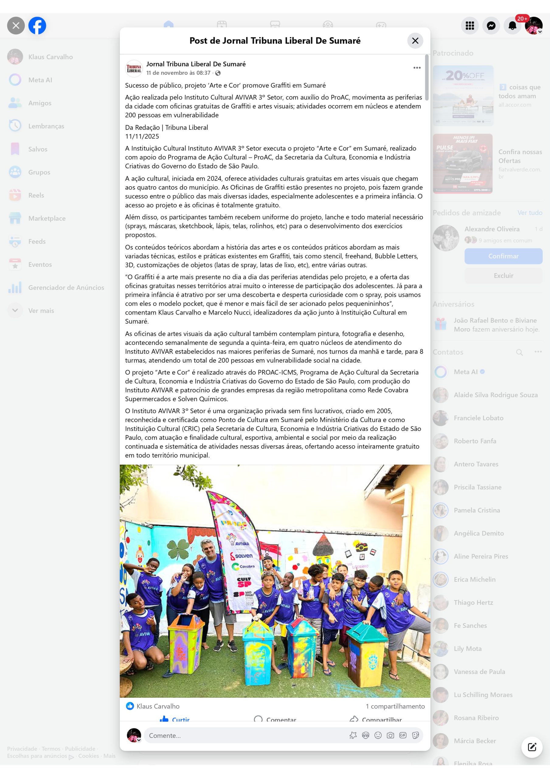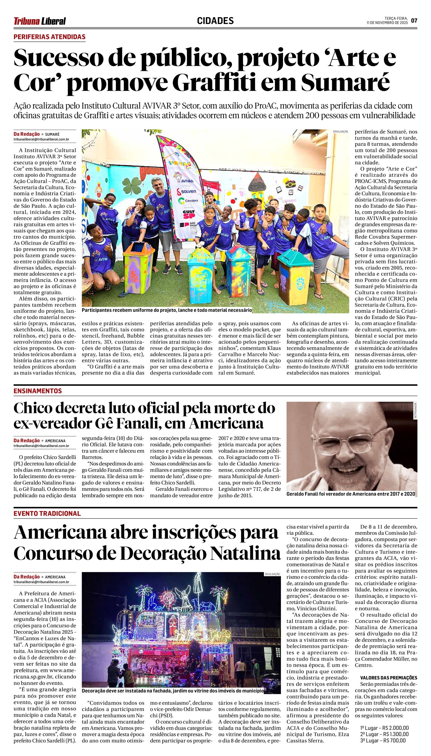 Avivar comemora sucesso de oficinas em Sumaré – Tribuna Liberal – 30/12/2025